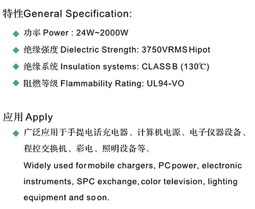 产品名称:开关电源变压器(EE型系列)